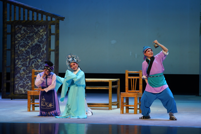當(dāng)晚四出折子戲各有千秋?!堆篮塾?middot;金殿認(rèn)子》由梅花獎得主、國家級非物質(zhì)文化遺產(chǎn)代表性傳承人陳澄領(lǐng)銜,三代淮劇人同臺,一開腔便贏得滿堂彩。緊隨其后的《趕腳》,則讓觀眾看到了淮劇的青春面孔,三位“00后”演員擔(dān)綱主演,將一出輕喜劇演得靈動鮮活。“真沒想到,這么年輕的演員,能把傳統(tǒng)戲演得這么有味道。”北京觀眾李曉風(fēng)是第一次現(xiàn)場看淮劇,她是沖著淮劇“國家級非物質(zhì)文化遺產(chǎn)”這個招牌來的,“《趕腳》這出戲太有意思了,又好笑又好看。三個年輕人翻打滾踢,功夫扎實,表演也放得開。我看得直拍手。”她說,三個主演這么年輕就能站在國家大劇院的舞臺上,很不容易。淮劇有后勁兒!
