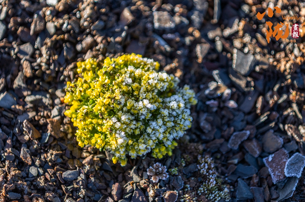 抱莖葶藶,屬于十字花科葶藶屬的墊狀高山植物。它呈緊湊的團(tuán)塊狀,葉片密集,表面覆有白色絨毛,頂端開(kāi)有細(xì)碎的黃色小花,生長(zhǎng)在碎石環(huán)境中,這種形態(tài)能幫助它適應(yīng)高海拔的低溫、強(qiáng)風(fēng)與強(qiáng)紫外線環(huán)境,減少水分流失。