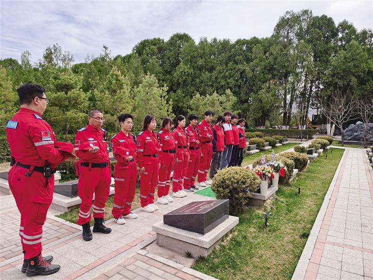 除了應(yīng)急保障,救援隊還主動參與到植樹活動中。他們利用空閑時間,和志愿者一起揮鍬挖坑、扶苗培土,動作熟練且充滿干勁。隊長張建欣表示:“我們不僅是來保障安全的,更是來貢獻(xiàn)一份力量的。能親手為英烈種下一棵樹,是我們的榮幸。”