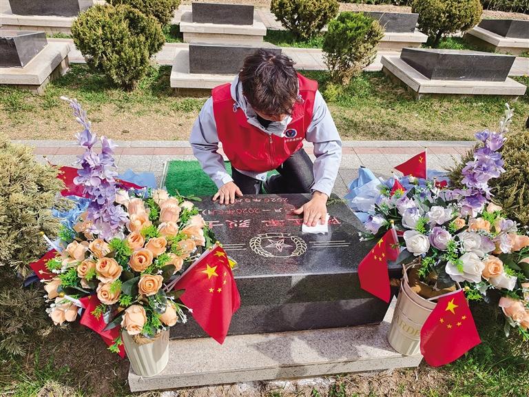 輕擦墓碑寄哀思 一拭一撫敬英魂